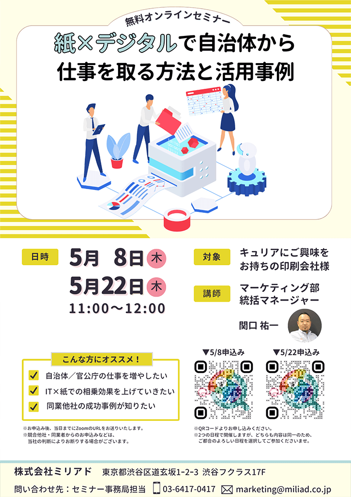 本セミナーでは、QRコードを活用して「紙からデジタルへ」導線をつくり、ログ情報をキーに、印刷物の価値を高める新しい提案の形をご紹介いたします。